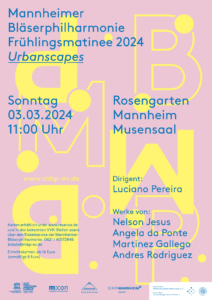 Rückblick Frühlingsmatinee 2024 3. März 2024 Rosengarten Mannheim Musensaal Konzertrückblick Die Mannheimer Bläserphilharmonie spielt unter Leitung von LucianoPereira (Portugal) Werke